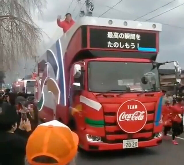 コカ・コーラのスタッフが併走して