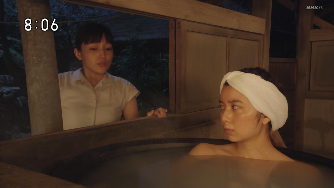 カメラアングルは、歌子を演じる上白石萌歌がお湯に浸かっているところを正面から映す形で“入浴シーン”に変わり、上白石のデコルテなどが露わになっている。