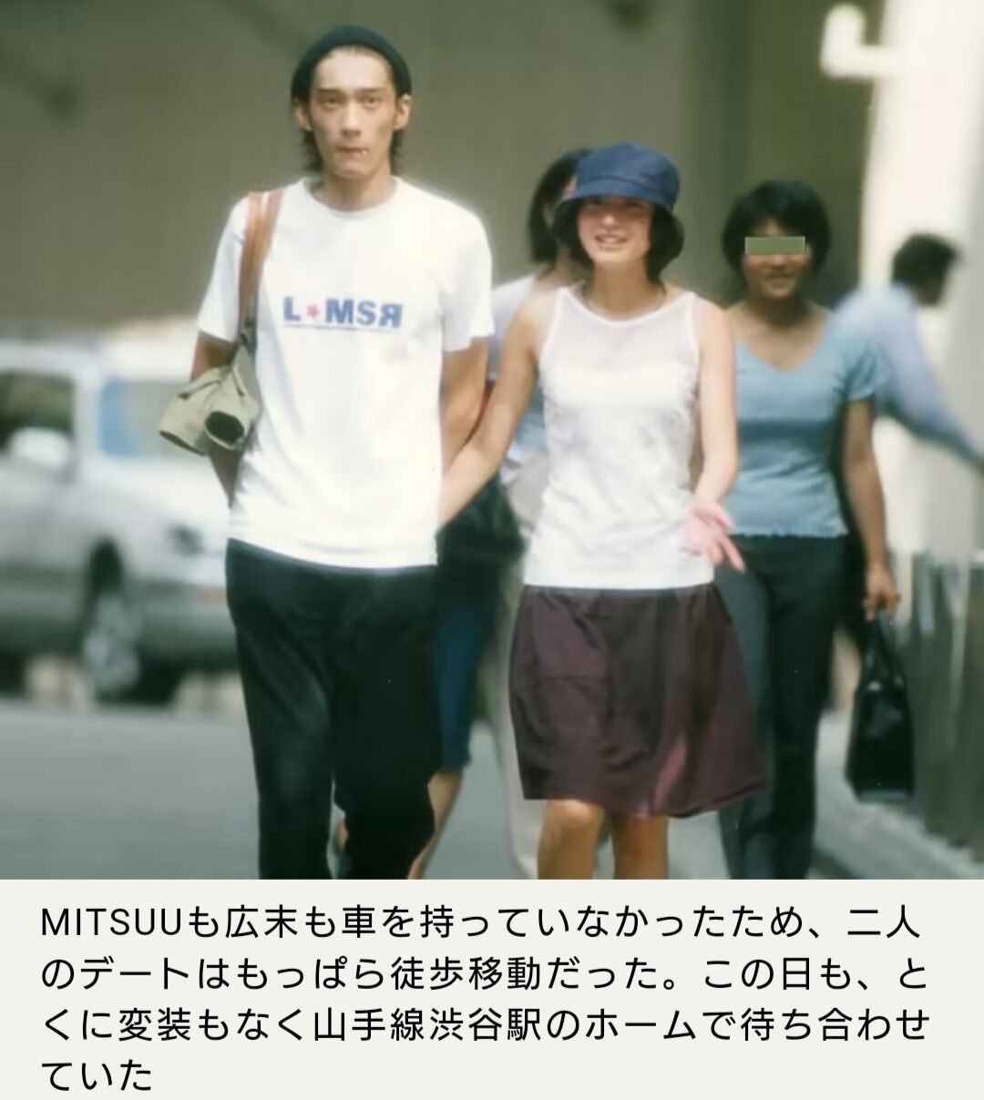 本誌は、彼女の熱愛現場を何度も目撃してきたが、初めてデート現場を見たのは’98年9月。アイドルとして全盛期だった時のことだ。当時18歳だった広末のお相手は、21歳だったMITSUUこと俳優の村田充(45)。