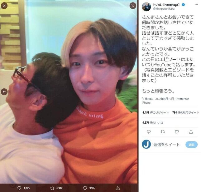 そこで「テレビ番組」の話題となったが、ヒカルは「損してると思うのが、当たり前にさんまさんに会えちゃうから、それがいかに凄い経験なのか、分かってないんですよ。慣れでやっていて、どれだけ希少かっていうのを、その辺の芸人は分かってないでしょ?」と語る。