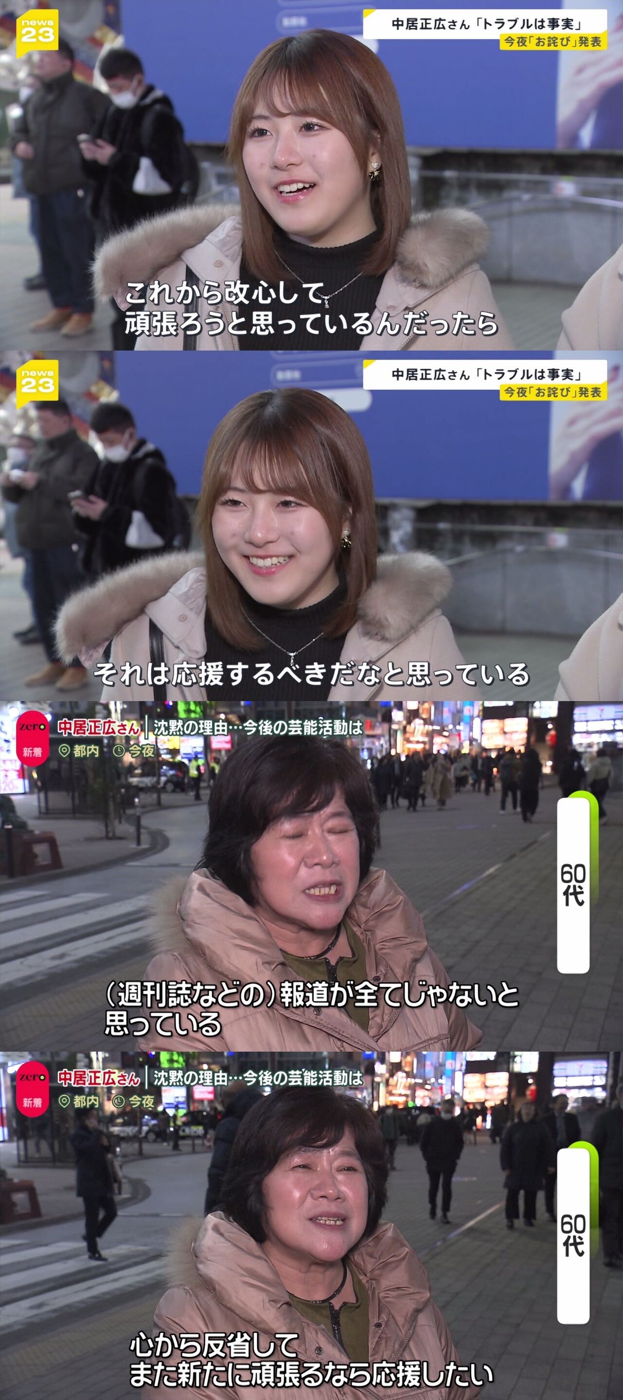 そんな中、1月9日に中居が公式サイトでコメントを発表。女性トラブルがあったことを認めた。