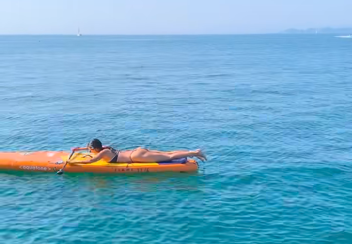 さらに「久々レンタルしたサップは落ちまくり 失敗した方が面白い。人生も」とつづり、布面積が少なめの、衝撃的なふんどしのような茶色いTフロントビキニ水着姿でサップに挑戦して水の中に落ちる場面や、サップや浮輪に乗ってリラックスする姿もアップした。