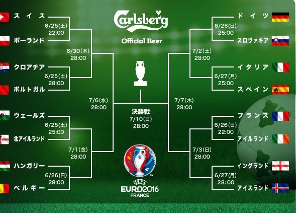 @deutz1a#EURO2016 決勝トーナメントベスト16 試合日程