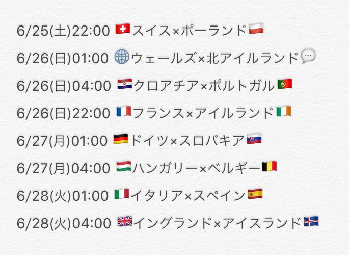 @Ryota_Nadeshiko【UEFA EURO 2016】《決勝T》#GER v #SVK #ITA v #ESP #FRA v #IRL #ENG v #ISL #SUI v #POL #CRO v #POR #WAL v #NIR #HUN v #BEL #EURO2016